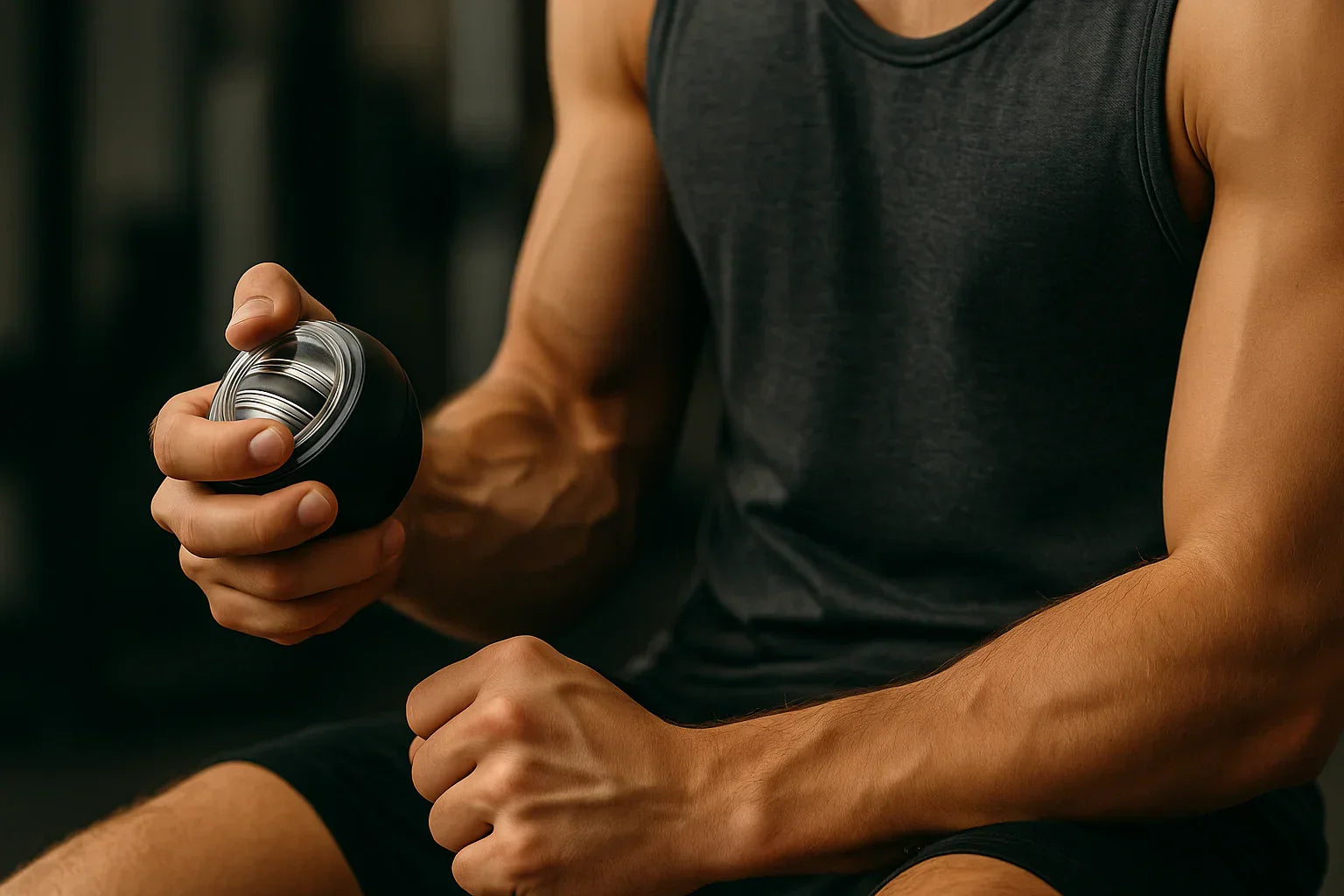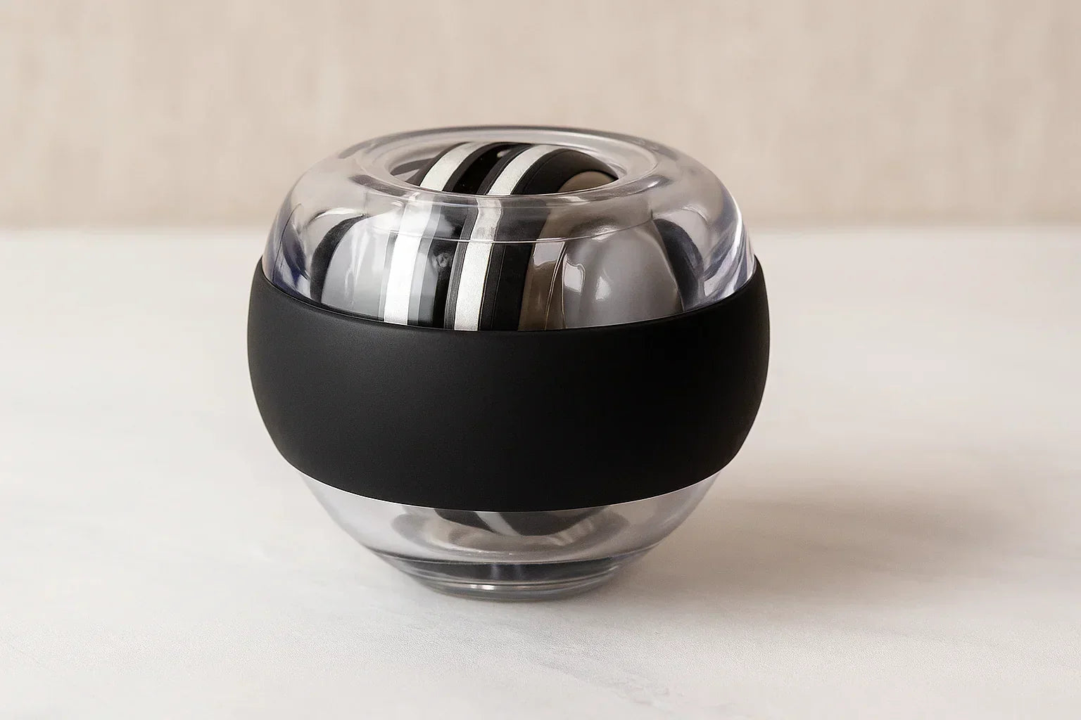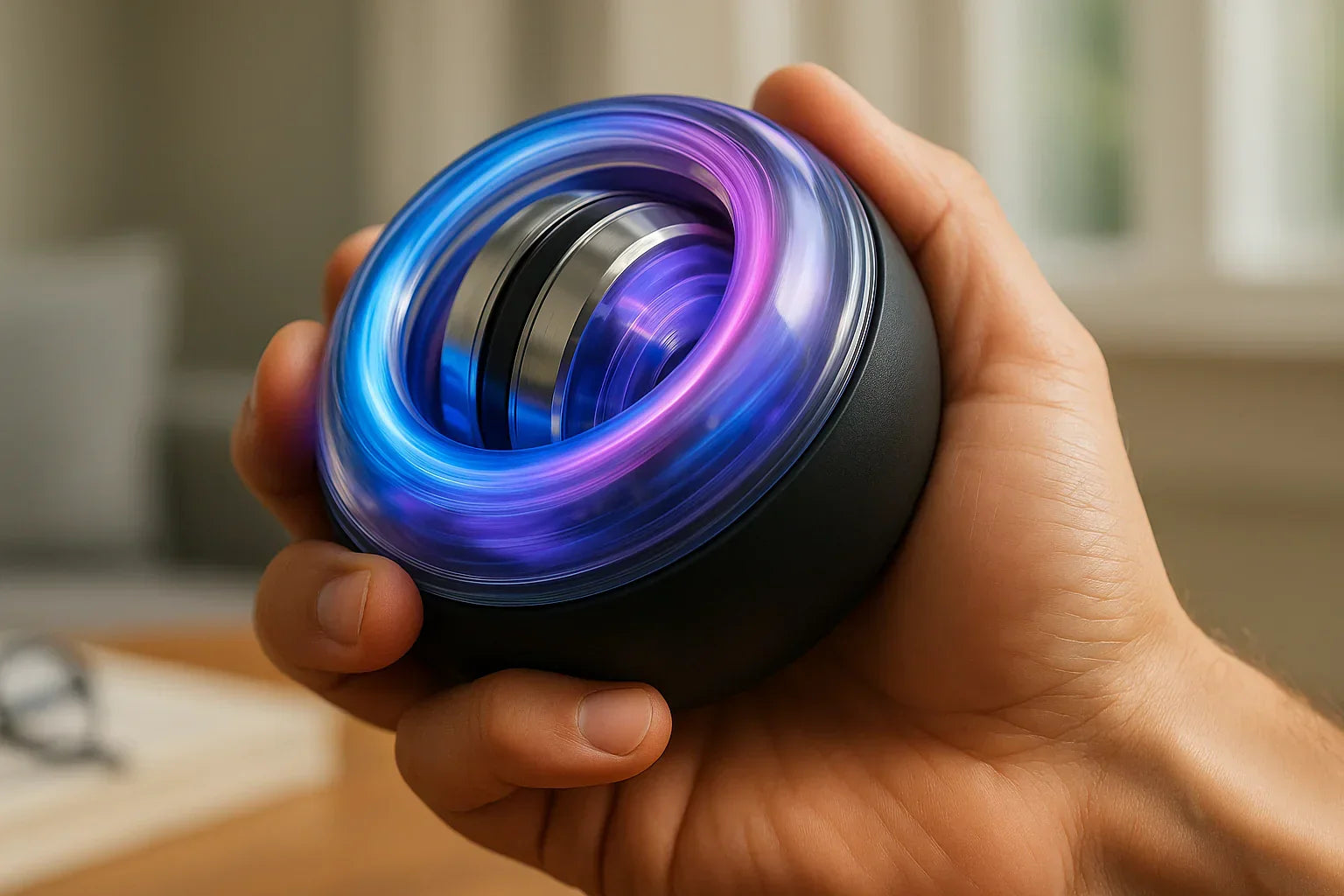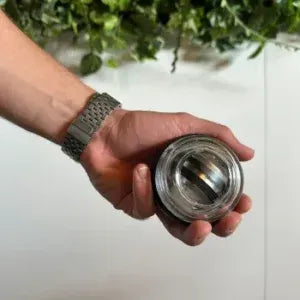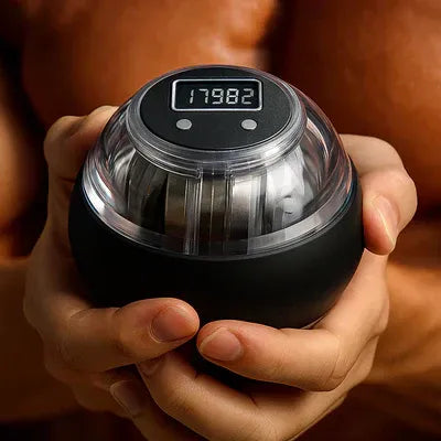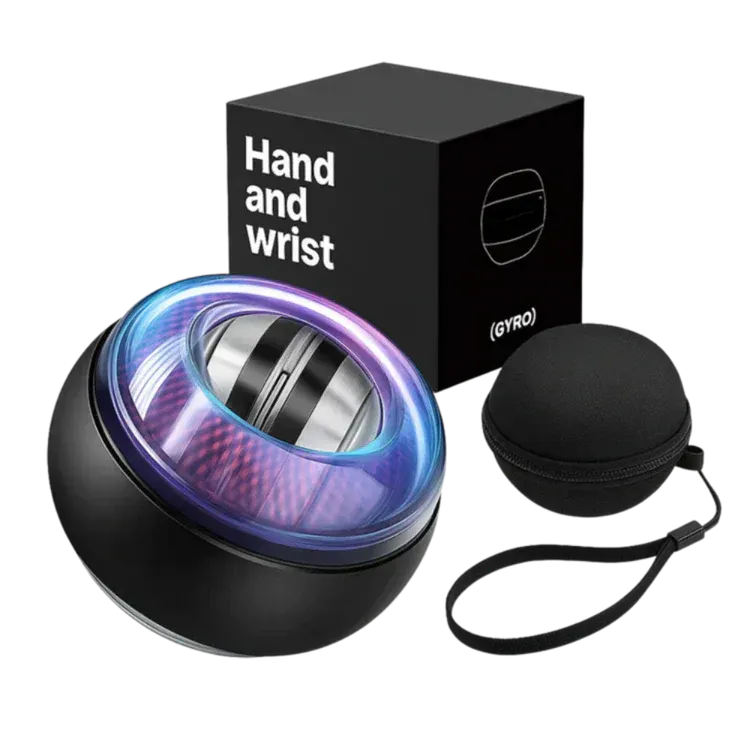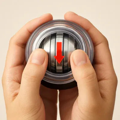 Grip the device and give it a gentle twist. The internal rotor begins to spin—activating gyroscopic resistance that intensifies with every wrist movement.